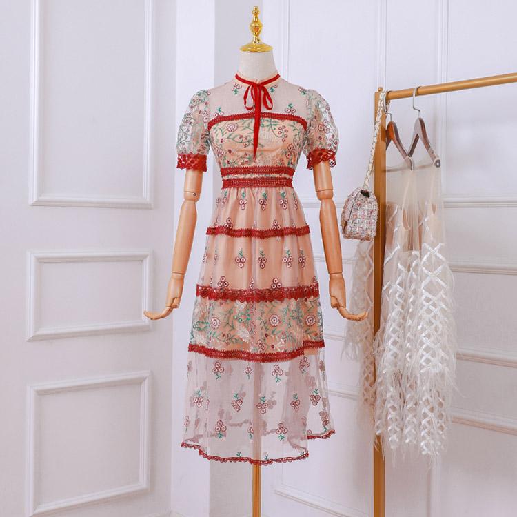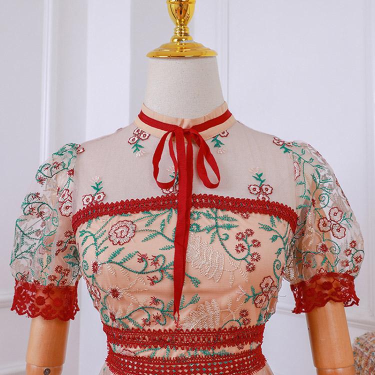 #7160 RETRO STAND EMBROIDERY STITCHING LACE DRESS
