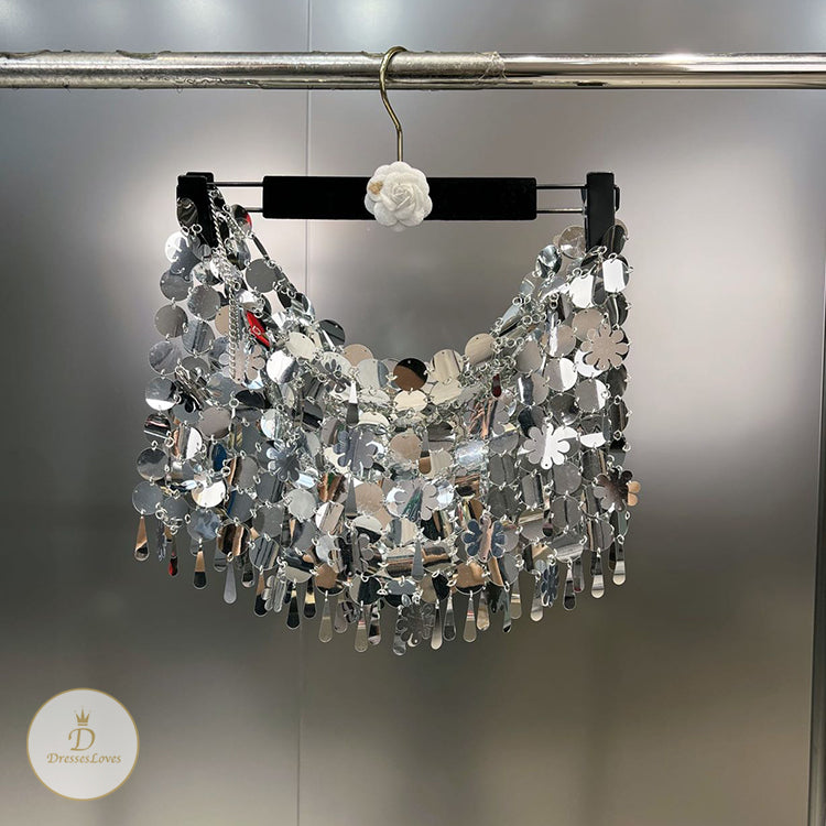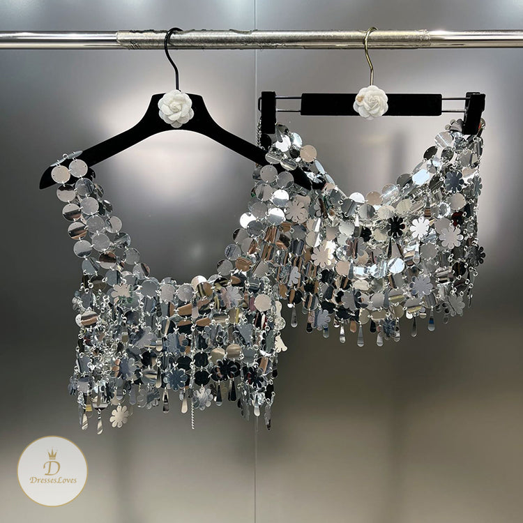 #C1011 SEQUIN VEST + TASSEL SKIRT SET